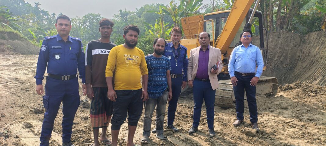 এসময় নদীর পাড় হতে অবৈধভাবে মাটি কর্তনের কারণে বালুমহাল ও মাটি ব্যবস্থাপনা (সংশোধন) আইন, ২০২৩ অনুসারে মো: বিপ্লব হোসেন (৩২), মো: আব্দুল হাসান (২২) এবং মো: সাইফুল ইসলাম (৩৫) নামে তিন ব্যক্তির প্রত্যেককে ১৫ (পনের) দিন করে বিনাশ্রম কারাদন্ড প্রদান করা হয়।