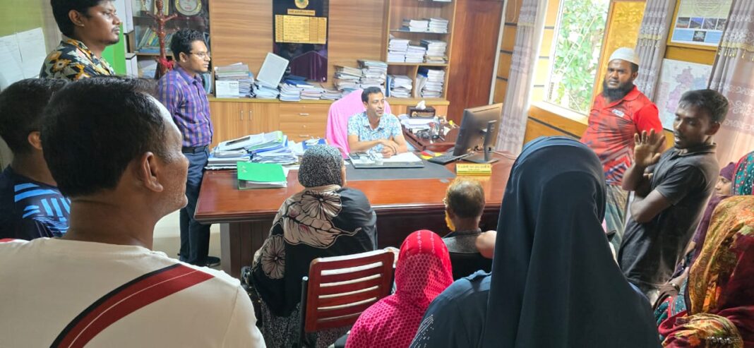 যশোর শহরের ভৈরব নদের পাড়ের ক্ষতিগ্রস্ত মানুষ রবিবার সকালে পানি উন্নয়ন বোর্ডের (পাউবো) নির্বাহী প্রকৌশলীর সাথে সাক্ষাৎ করেছেন।