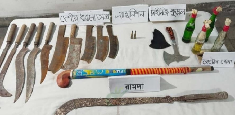 সকালে উদ্ধারকৃত অস্ত্র ও পেট্রোল বোমা অভয়নগর থানায় হস্তান্তর করা হয়েছে।