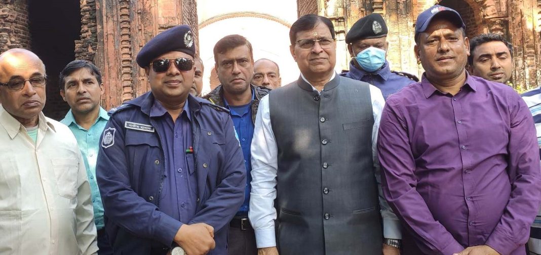অভয়নগর প্রতিনিধি: যশোরের অভয়নগরে ঐতিহ্যবাহী এগার শিব মন্দির পরিদর্শন করেছেন বাংলাদেশে নিযুক্ত ভারতের সহকারী হাই কমিশনার (খুলনা) ইন্দ্রজিৎ সাগর। গতকাল মঙ্গলবার দুপুরে উপজেলার বাঘুটিয়া ইউনিয়নের অভয়নগর গ্রামে অবস্থিত এই শিব মন্দির পরিদর্শন করেন তিনি। এসময় উপস্থিত ছিলেন, অভয়নগর থানার ভারপ্রাপ্ত কর্মকর্তা (ওসি) একেএম শামীম হাসান, বাঘুটিয়া ইউপি চেয়ারম্যান শেখ তৈয়েবুর রহমান, মন্দির কমিটির নেতৃবৃন্দ, সাংবাদিক ও এলাকাবাসী।