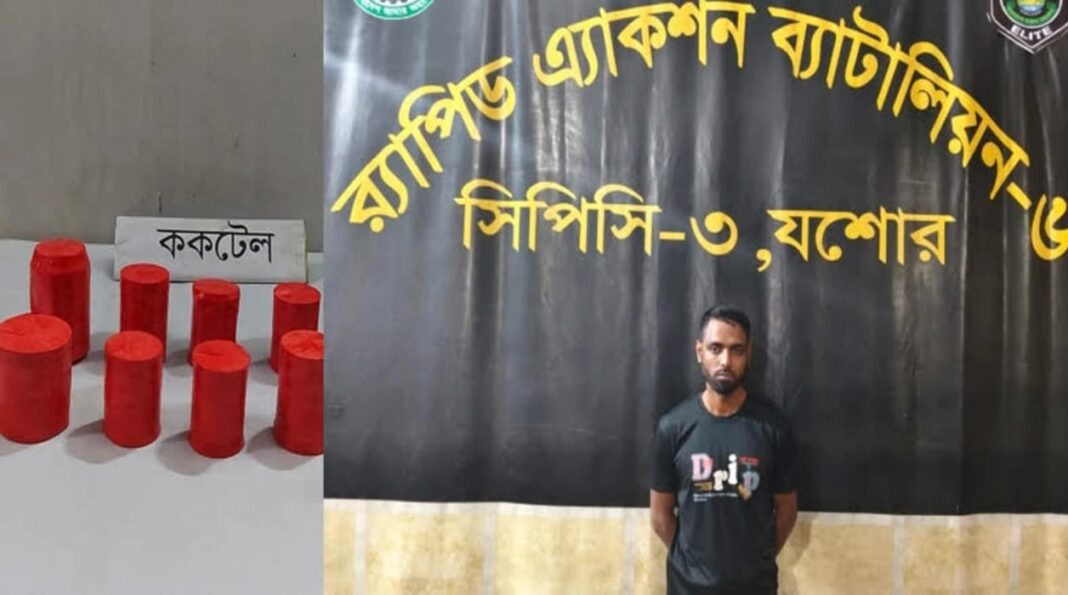 যশোরের অভয়নগর উপজেলার সিদ্ধিপাশা ইউনিয়নে বিশেষ অভিযান চালিয়ে ১২টি ককটেলসহ এক সন্ত্রাসীকে গ্রেফতার করেছে র্যাব-৬। সোমবার (৯ মার্চ) সন্ধ্যায় উপজেলার নাউলি গ্রামে অভিযানটি পরিচালিত হয়।