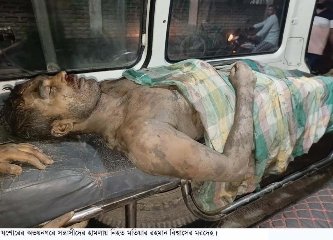 যশোরের অভয়নগরে সন্ত্রাসীদের হামলায় মতিয়ার রহমান বিশ্বাস (৪৫) নামের একজন ঘাট শ্রমিক নিহত হয়েছেন। এসময় অপর দুজনকে কুপিয়ে জখম করা হয়। বৃহস্পতিবার রাতে নওয়াপাড়া পৌরসভার ২নং ওয়ার্ডের মশরহাটী গ্রামের ভৈরব ব্রিজ সংলগ্ন এলাকায় এ ঘটনাটি ঘটে।