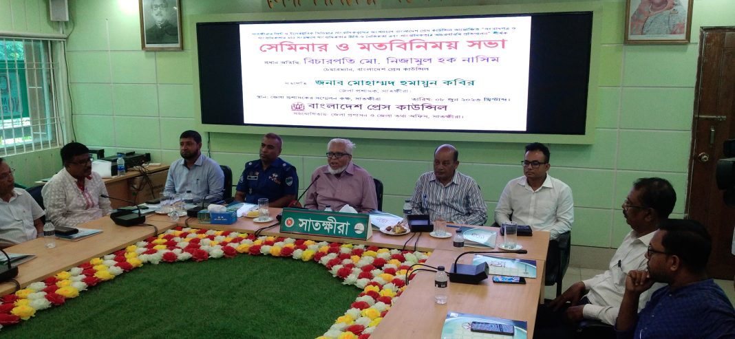 বৃহস্পতিবার বেলা সাড়ে ১১টায় সাতক্ষীরা জেলা প্রশাসকের সম্মেলন কক্ষে এসব মন্তব্য করেন বাংলাদেশ প্রেস কাউন্সিলের চেয়ারম্যান ও সাবেক বিচারপতি মোঃ নিজামুল হক নাসিম।
