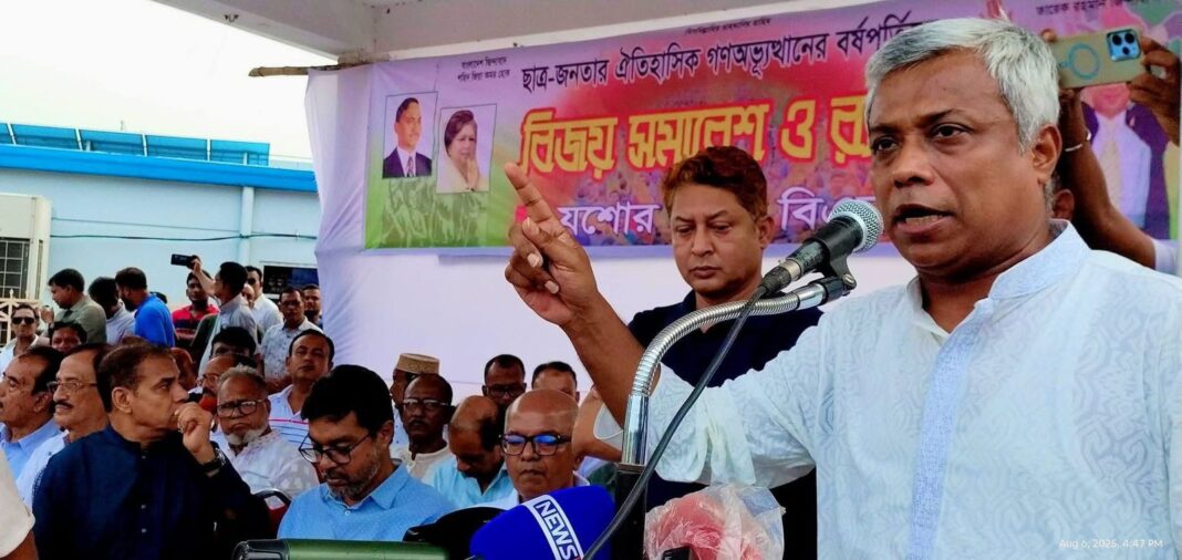 ফ্যাসিস্ট স্বৈরাচারী হাসিনা সরকারের পতন এবং ঐতিহাসিক গণঅভ্যুত্থানের বর্ষপূর্তি উপলক্ষে অনুষ্ঠিত সমাবেশে সভাপতিত্ব করেন যশোর জেলা বিএনপির সভাপতি এড. সৈয়দ সাবেরুল হক সাবু। নেতৃবৃন্দের মধ্যে বক্তৃতা করেন জেলা বিএনপির সাধারণ সম্পাদক দেলোয়ার হোসেন খোকন, যশোর চেম্বার অব কমার্সের সভাপতি ও জেলা বিএনপির অন্যতম নেতা মিজানুর রহমান খান, জেলা বিএনপির সাংগঠনিক সম্পাদক রবিউল ইসলাম, জেলা মহিলা দলের সভাপতি রাশিদা রহমান, জেলা যুবদলের সদস্য সচিব আনসারুল হক রানা প্রমূখ।