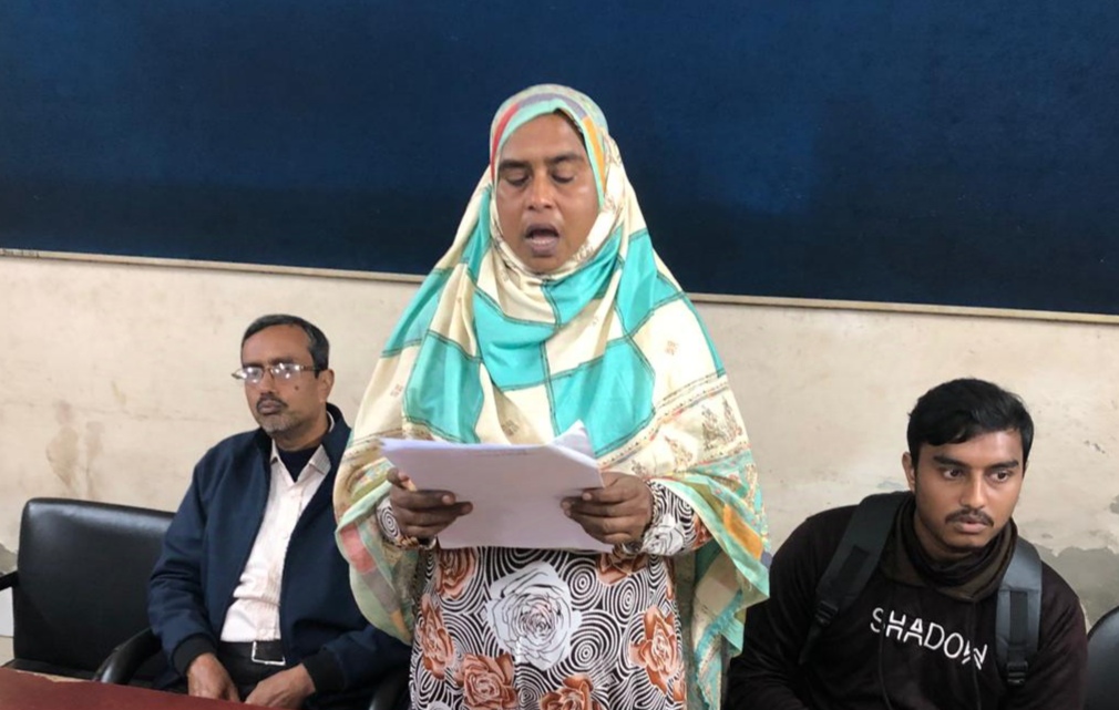 লিখিত বক্তব্যে তিনি বলেন, সর্বশেষ গত ১৮ ডিসেম্বর আদ্-দ্বীন ফাউন্ডেশনের কর্মী হান্নান, আশিক ও রনিসহ ২০/৩০জন স্কেভেটর ও বুলডোজার নিয়ে তার বাড়িতে যান। এরপর ভাড়াটিয়া কিতাব আলীর হাতে ৩৫ হাজার টাকা ধরিয়ে দিয়ে বাড়ি উচ্ছেদ ও গাছপালা কেটে দেয়। পরের দিন খবর পেয়ে তিনি ঘটনাস্থলে গিয়ে দেখেন, তার বাড়ির ধ্বংসাবশেষও নেই। এ ঘটনায় তিনি আদ্-দ্বীন ফাউন্ডেশনের তিন কর্মী ও ভাড়াাটিয়া কিতাব আলী, তার ও ছেলের বিরুদ্ধে কোতোয়ালি থানায় অভিযোগ দিয়েছেন।
