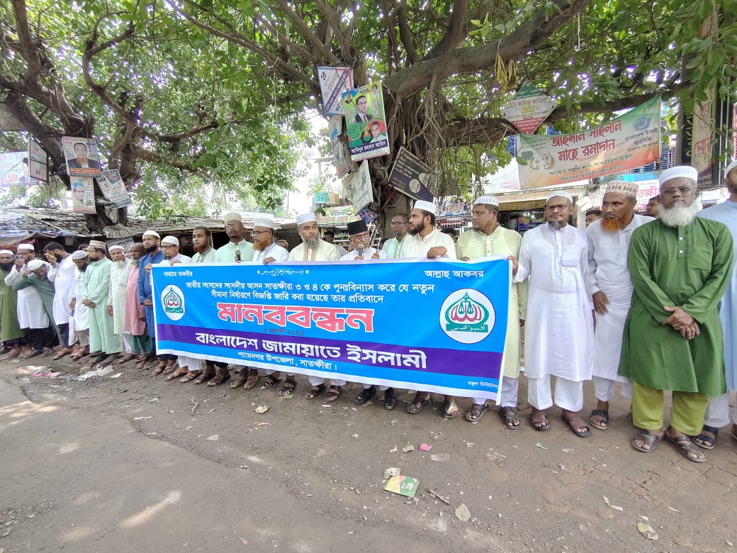 মোঃ আলফাত হোসেনঃ জাতীয় সংসদের সাতক্ষীরা-৩ ও সাতক্ষীরা-৪ আসনের সীমানা পুনর্বিন্যাস করে নির্বাচন কমিশনের খসড়া গেজেট প্রকাশের প্রতিবাদে শ্যামনগরে মানববন্ধন অনুষ্ঠিত হয়েছে।