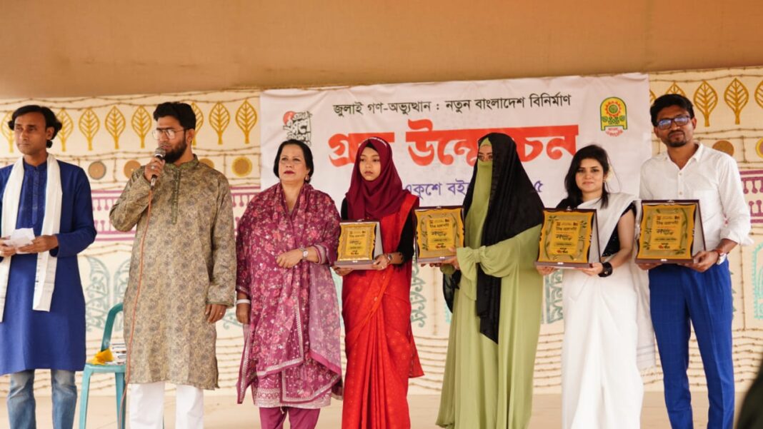 নিজস্ব প্রতিবেদক: শুক্রবার ঢকায় একুশে বই মেলার সমাপনী দিনে দীপ্ত প্রকাশনীর আয়োজনে মোড়ক উন্মোচন ও সম্মাননা স্মারক প্রদান অনুষ্ঠানের আয়োজন করা হয়। অনুষ্ঠানে যশোরের তরুণ লেখক শাহিন রেজা লিখনসহ ৪ জনকে সম্মাননা স্মারক প্রদান করা হয়।