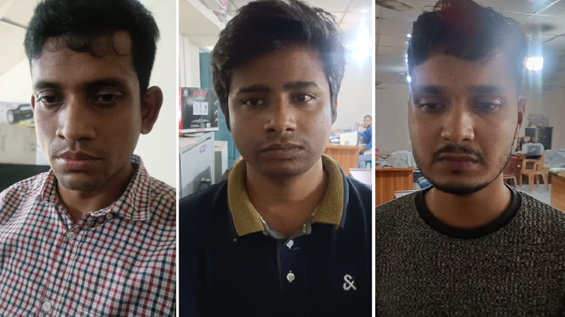 আটককৃতরা হলেন- জামালপুর জেলার বরিশাবাড়ী উপজেলার কৃষ্ণপুর গ্রামের শিপন হোসেন রাসেল (২২), শেরপুর জেলার শ্রীবরদী উপজেলার গৌরজরিনা গ্রামের সামিউল হক (৩০) ও নেত্রকোনা জেলা সাদরের দূর্গাশ্রম গ্রামের সরোয়ার হোসেন (২৮)।