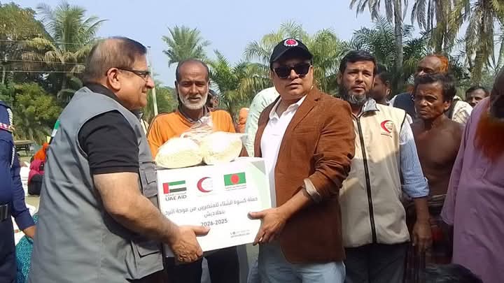 শীতের তীব্রতা ও কুয়াশায় বিপর্যস্ত দক্ষিণ খুলনার পাইকগাছা উপজেলায় গরিব এবং অসহায়দের মাঝে ত্রাণ সামগ্রী এবং কম্বল বিতরণ করেছেন ইউনাইটেড আরব আমিরাত বাংলাদেশ এম্বাসীর বৈদেশিক সহায়তা বিষয়ক ডিরেক্টর রাশেদ আল মাইল আল জাবি।