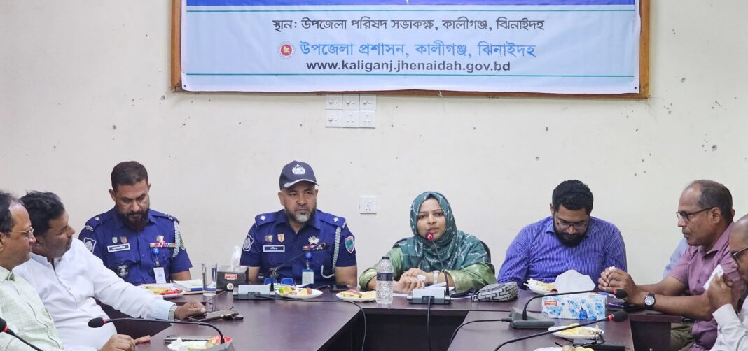 কালীগঞ্জ উপজেলা নির্বাহী কর্মকর্তা (ইউএনও) রেজওয়ানা নাহিদ এর সভাপতিত্বে সভাতে উপজেলা সহকারী কমিশনার (ভূমি) শাহিন আলম, কালিগঞ্জ থানার অফিসার্স ইনচার্জ শফিকুল ইসলাম, বারবাজার হাইওয়ে থানার নবাগত ওসি আলমগীর কবির, উপজেলা কৃষি কর্মকর্তা মাহবুব আলম রনি, উপজেলা পল্লী উন্নয়ন কর্মকর্তা খায়রুল হক, সমাজসেবা কর্মকর্তা তরিকুল ইসলাম, মহিলা বিষয়ক কর্মকর্তা তসলিমা খাতুন, বিএনপি নেতা ইলিয়াস রহমান মিঠু, যুবনেতা মাহাবুবুর রহমান মিলন, ইউপি চেয়ারম্যান নজরুল ইসলাম রিতু সহ সাংবাদিক ও সুশীল সমাজের প্রতিনিধিরা উপস্থিত ছিলেন।
