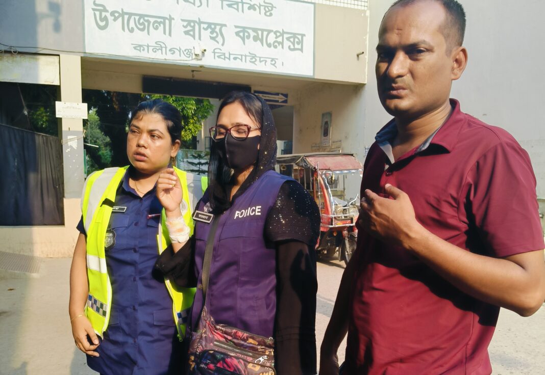সোমবার বিকালে কালীগঞ্জ পৌরসভাধীন বাকুলিয়া গ্রামে এ ঘটনা ঘটে। আহতরা হলেন, যশোর কোতয়ালী থানার অধিন চাঁচড়া পুলিশ ফাড়ির এএসআই তাপস কুমার পাল, কনেস্টবল রাবেয়া খাতুন ও ফারজানা খাতুন।