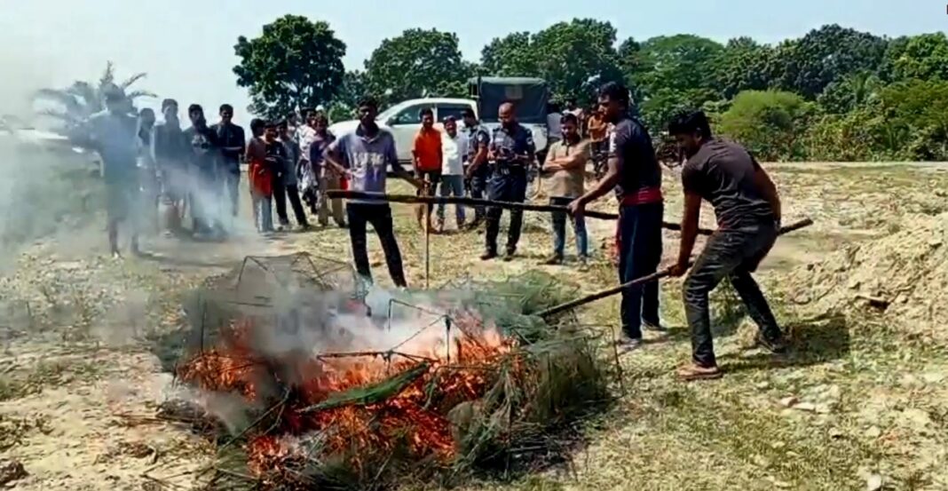 ঝিনাইদহ কালীগঞ্জে ভ্রাম্যমাণ আদালতের অভিযানে ২০টি নিষিদ্ধ চায়না দুয়ারী জাল জব্দ করে সেগুলো আগুনে পুড়িয়ে ধ্বংস করা হয়েছে।