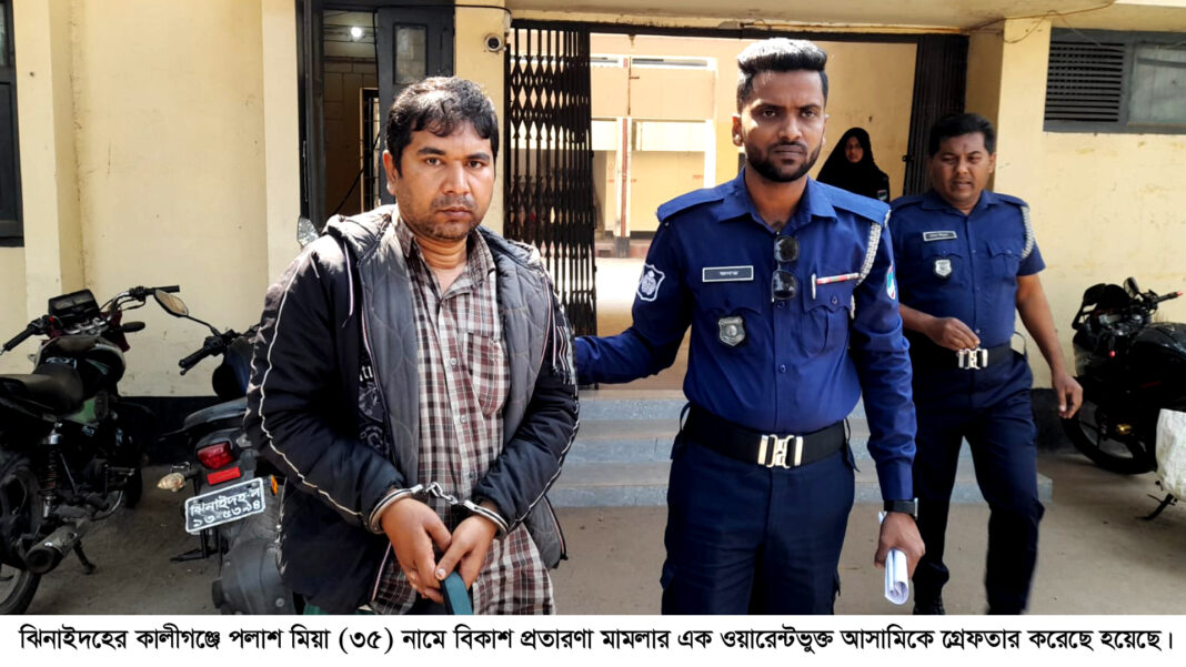 পুলিশ আরও জানায়, পলাশের বিরুদ্ধে হরিণাকুন্ডু থানায় বিকাশ প্রতারণা সংক্রান্ত একাধিক মামলা রয়েছে। তিনি দীর্ঘদিন ধরে এসব মামলায় পলাতক ছিলেন এবং তার বিরুদ্ধে গ্রেফতারি পরোয়ানাও জারি ছিল।