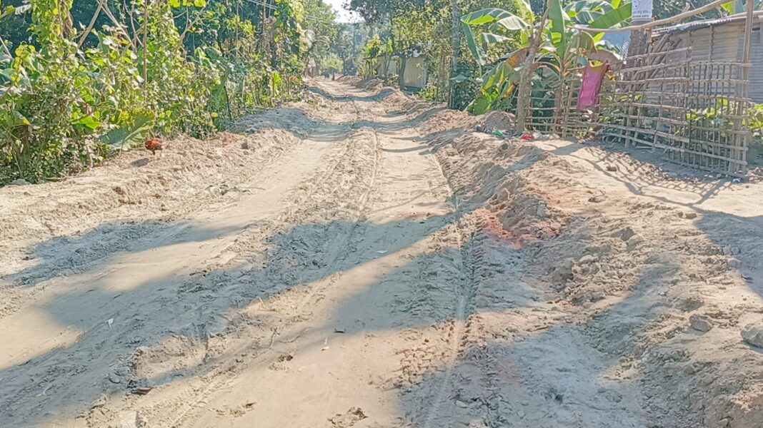 বালির পরিবর্তে মাটি, নিম্ন মানের পুরোনো ইটের খোয়া ও তার অবশিষ্ট অংশের ধুলোবালি দিয়ে রাতের আধারে কাজ করা হচ্ছে। স্থানীয়দের অভিযোগ,সড়কের কাজ তদারকিতে উপজেলা এলজিইডির কর্মকর্তাদের দায়িত্বরত কর্মকর্তাদের গাফিলতির কারনে ঠিকাদারী প্রতিষ্ঠান ব্যাপক অনিয়মের মধ্যদিয়ে কাজ করে যাচ্ছে।