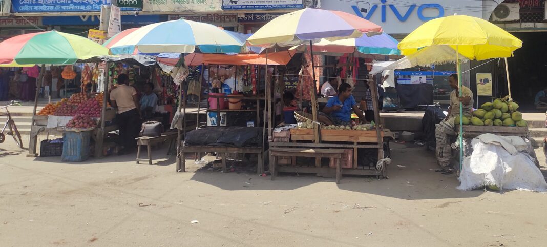 অবৈধ ভাবে ফুটপাত দখল এবং রাস্তার উপরে তিন স্তরের দোকান বসিয়ে ব্যবসা পরিচালনা করছে এ কারনে সাধারণ মানুষের চলাচল ও যান চলাচলে ব্যাপক ভাবে বিঘ্ন সৃষ্টি হয় সকাল থেকে রাত ৯ টা পর্যন্ত। অবৈধ ভাবে ফুটপাত দখল এবং রাস্তার উপর দোকান বসানোর নেপথ্যের কারিগর ছিলেন স্থানীয় প্রভাবশালী রাজনৈতিক ব্যক্তিবর্গ বলে অভিযোগ করেন বাজারের সাধারণ ব্যাবসায়ীরা।