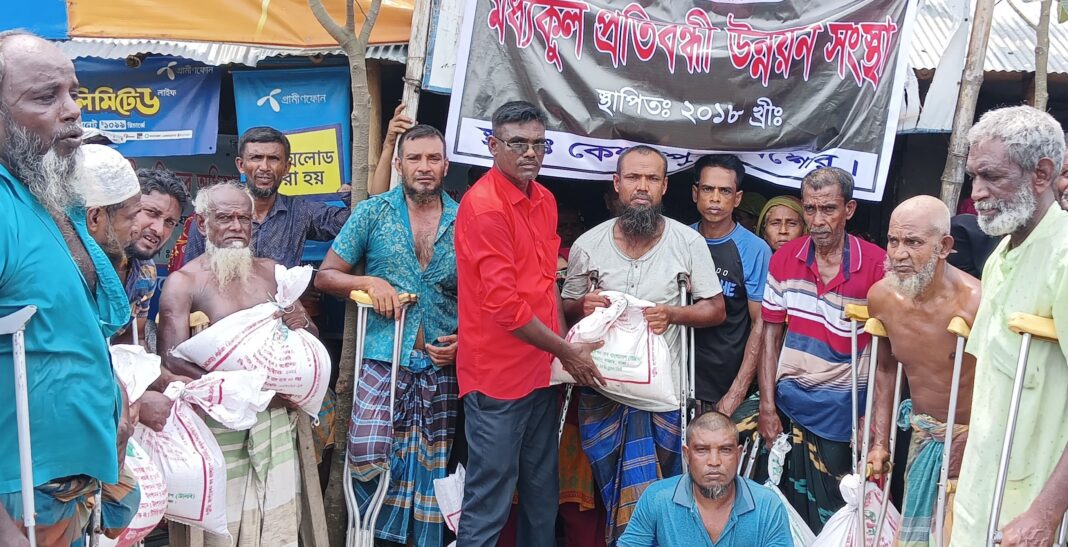 কেশবপুর উপজেলা নির্বাহী কর্মকর্তা তুহিন হোসেনের নির্দেশনায় প্রতিবন্ধীদের মাঝে চাল বিতরণ করেন, মধ্যকুল প্রতিবন্ধী উন্নয়ন সংস্থার সভাপতি ইউপি সদস্য আব্দুর রহিম। এ সময় উপস্থিত ছিলেন, সংস্থার সাধারণ সম্পাদক জামাল উদ্দিন, সহসম্পাদক মাসুম বিল্লাহ, সদস্য আব্দুস সবুর, সদস্য রিক্তা বেগম, সিরাজুল ইসলাম, শিউলী খাতুন প্রমুখ। ঈদের আগে চাল পেয়ে প্রতিবন্ধীরা খুশি প্রকাশ করেন।