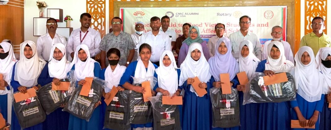 চট্টগ্রাম মেডিকেল কলেজ অ্যালামনাই ইউএসএ, রোটারি ই-ক্লাব অব হেরিটেজ নিউইয়র্ক ও ভলান্টিয়ার্স অ্যাসোসিয়েশন ফর বাংলাদেশ (ভাব) ইউএসএ’র আর্থিক সহযোগিতায় ২০২৪ সালের ভয়াবহ বন্যায় কেশবপুরে ক্ষতিগ্রস্ত ১০টি শিক্ষাপ্রতিষ্ঠানকে নয় লাখ ৩০ হাজার টাকা, ৭২ জন শিক্ষার্থীকে শিক্ষাবৃত্তি হিসেবে চার লাখ ১১ হাজার টাকা ও ৭২টি স্কুলব্যাগ প্রদান করা হয়।