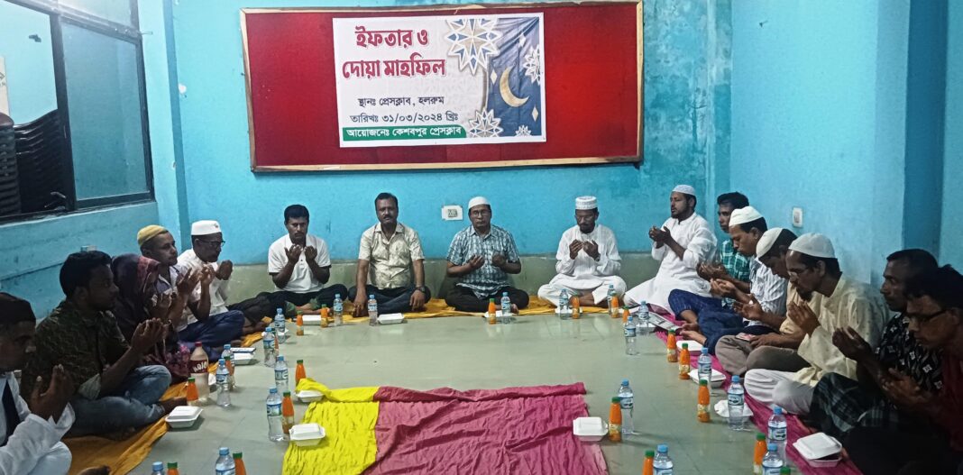 কেশবপুর (যশোর) প্রতিনিধি:যশোরের কেশবপুর প্রেসক্লাবের উদ্যোগে ইফতার ও দোয়া মাহফিল অনুষ্ঠিত হয়েছে। রোববার সন্ধ্যায় প্রেসক্লাব মিলনায়তনে ওই ইফতার ও দোয়া মাহফিলের আয়োজন করা হয়।