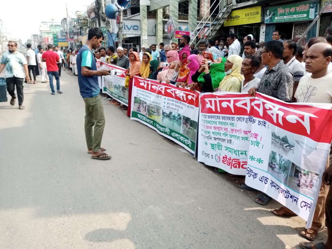 দেখা দিয়েছে মানবিক বিপর্যয়। মানববন্ধন থেকে দ্রুত পানি সরানোর কার্যকর উদ্যোগ গ্রহণ না করা হলে আগামী ছয় অক্টোবর রোববার ভবদহ দিবসে জেলা প্রশাসকের কার্যালয়ের সামনে অবস্থান কর্মসূচি পালনের হুসিয়ারী দেওয়া হয়। এসময় অভয়নগর উপজেলা নির্বাহী কর্মকর্তা জয়দেব চক্রবতী হাজির হয়ে জলাবদ্ধতা থেকে দ্রুত মুক্তি পেতে করণীয় সব কিছু করার আশ^াস দেন।
