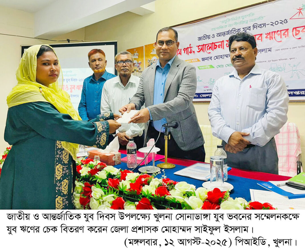 আজ মঙ্গলবার খুলনায় জাতীয় ও আন্তর্জাতিক যুব দিবস পালিত হয়।  এসময় যুব ঋণের চেক বিতরণ, অনলাইন কুইজ প্রতিযোগিতার পুরস্কার বিতরণ, জুলাই গণঅভ্যুত্থানের বীর শহিদদের স্মরণে ফলদ বৃক্ষরোপণ, পরিষ্কার-পরিচ্ছন্নতা কার্যক্রমসহ বিভিন্ন কর্মসূচির পালিত হয়েছে।