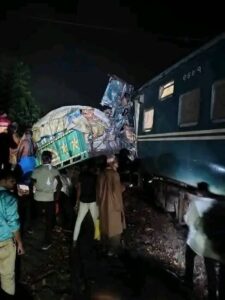 খুলনা রেলওয়ে থানার অফিসার ইনচার্জ ফেরদৌস আলম খান দুর্ঘটনার বিষয়টি নিশ্চিত করে বলেন, রাত সোয়া ৮ টার দিকে ডাউন মহানন্দ ট্রেনটি খুলনার দিকে আসছিল। এ সময়ে একটি ট্রাক ট্রেন লাইনের ওপর উঠে গেলে সংঘর্ষের ঘটনা ঘটে। তবে এ ঘটনায় কোন হতাহতের খবর তিনি জানেন না।