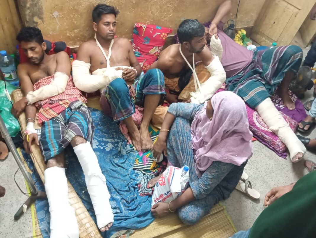 আহতরা হলেন উপজেলার সিংহঝুলী গ্রামের আবুল হোসেন দফাদারের ছেলে আরিফুল ইসলাম দফাদার (৩৫) ও মাজালী গ্রামের মৃত মোহাম্মদ আলীর ছেলে মামুন হোসেন (৩৭) উত্তর কয়ারপাড়া গ্রামের মহসীন আলীর ছেলে আব্দুর রহিম (৩৪), মশিউর নগর গ্রামের মোশারফ হোসেনের ছেলে রানা হোসেন (৩২) ও আন্দারকোটা গ্রামের মৃত মগরেব আলীর ছেলে লিটন হোসেন (৫০)।