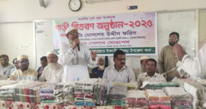 ভ্রাম্যমাণ প্রতিনিধি :যশোরের চৌগাছায় জামায়াত ইসলামের উদ্যোগে ৩শতাধিক সনাতন ধর্মী নারীকে শাড়ি প্রদান করা হয়েছে। আসন্ন দুর্গাপূজা উপলক্ষে এই শাড়ি বিতরণ করা হয়। বৃহস্পতিবার (১৮ সেপ্টেম্বর) বিকাল ৫টায় চৌগাছা কামিল মাদ্রাসা হলরুমে শাড়ি বিতরণ অনুষ্ঠিত হয়।