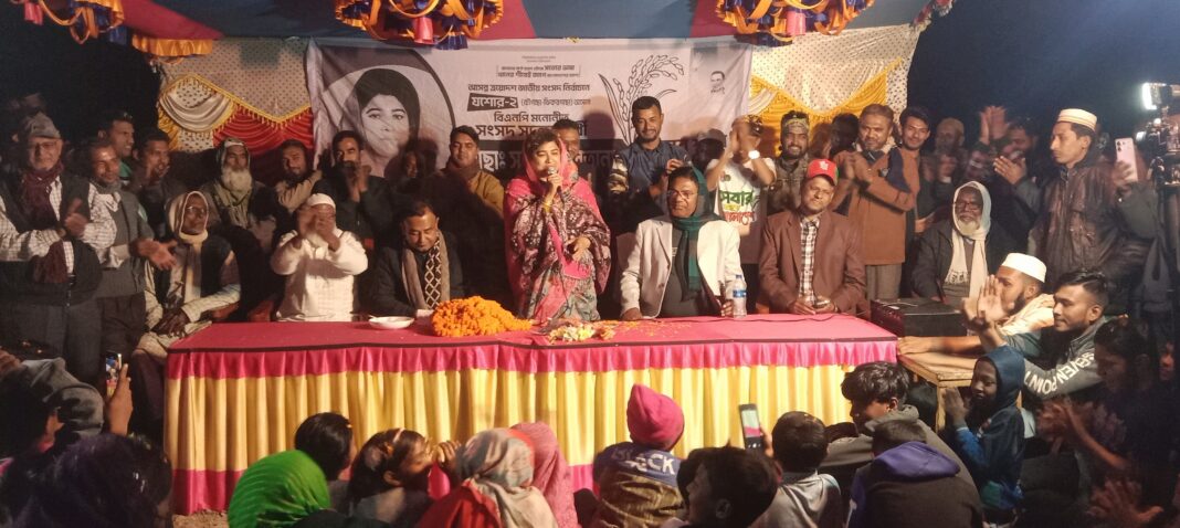 চৌগাছা(যশোর) প্রতিনিধি: যশোর-২ (চৌগাছা -ঝিকরগাছা) আসনে ধানের শীষ প্রতিকের এমপি প্রার্থী সাবিরা সুলতানা মুন্নীর পথ সভা অনুষ্ঠিত হয়েছে। শনিবার সন্ধ্যা ৭ টার জগনাথপুর সরকারি প্রাথমিক বিদ্যালয়ের মাঠ প্রাঙ্গণে অনুষ্ঠিত পথসভায় সিংহঝুলী ৫ নং ওয়ার্ড বিএনপির সভাপতি মতিয়ার রহমানের সভাপতিত্বে প্রধান অতিথি হিসেবে বক্তব্য রাখেন সংসদ সদস্য প্রার্থী সাবিরা সুলতান মুন্নী।