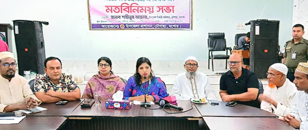 এছাড়া স্কুল-কলেজের শিক্ষার্থীদের মোবাইল ফোন ব্যবহারে সচেতনতা বৃদ্ধির আহ্বান জানানো হয়।সভায় ইউএনও শাহীনুর আক্তার সকলের মতামত মনোযোগ সহকারে শোনেন এবং চৌগাছার সার্বিক উন্নয়নে সম্মিলিতভাবে কাজ করার আশাবাদ ব্যক্ত করেন।