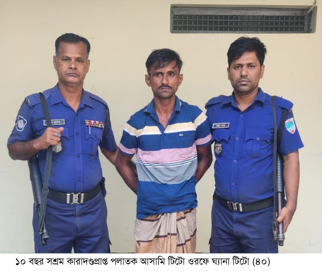 পুলিশ জানায়, মাদকদ্রব্য নিয়ন্ত্রণ আইনে ২০২০ সালের ৮ ফেব্রুয়ারির একটি মামলায় আদালত টিটোকে ১০ বছর সশ্রম কারাদণ্ড ও ৫ হাজার টাকা জরিমানার দণ্ডাদেশ দেন। দীর্ঘদিন ধরে তিনি পলাতক ছিলেন। সোমবার নিয়মিত বিশেষ অভিযানের অংশ হিসেবে এসআই সলিমুল হক, এসআই মিজানুর রহমান ও এসআই আমিরুল ইসলাম সঙ্গীয় ফোর্সসহ অভিযান চালিয়ে তাকে গ্রেফতার করা হয়।