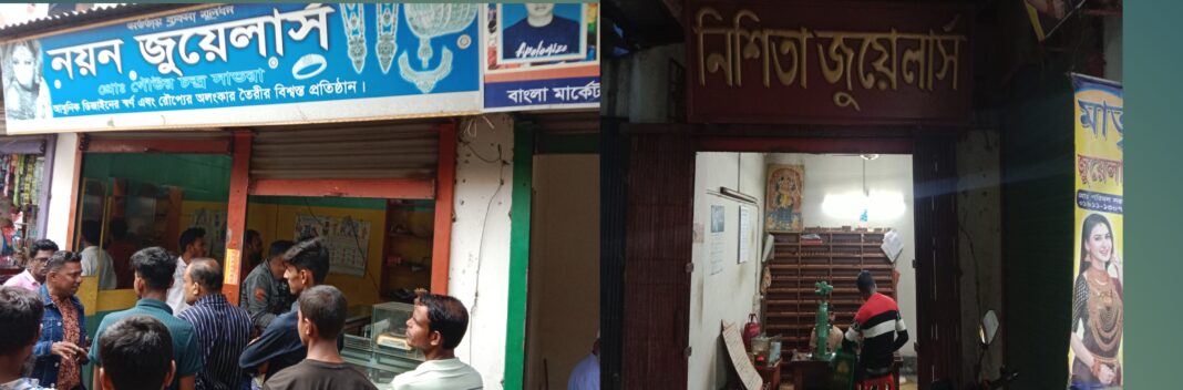নয়ন জুয়েলারি দোকানের মালিক গৌর চন্দ্র সাতরাক জানান, তার দোকানে থেকে ড্রয়ার ভেঙ্গে নগদ ১৩ হাজার টাকা এবং ২ লাখ ৫০ হাজার টাকার স্বর্ণ অলংকার চুরি হয়েছে। নিশিতা জুয়েলার্স’র মালিক নিমাই বিশ্বাস জানান তার দোকান থেকে ১ লক্ষ ৫০