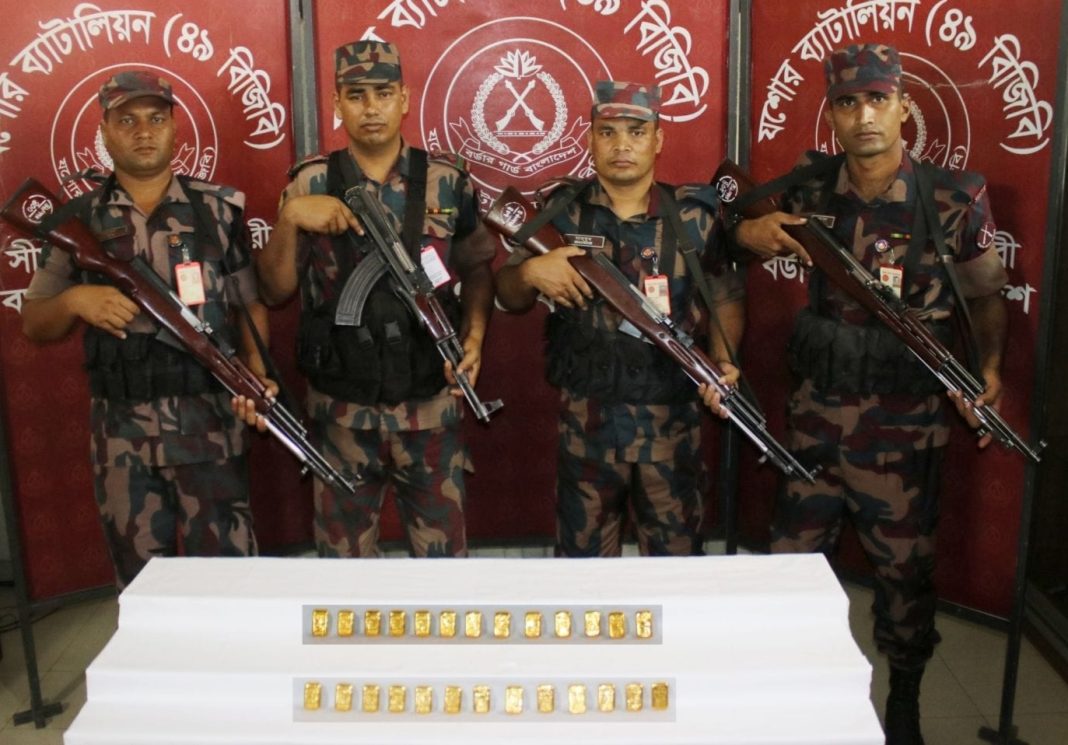 তাদের গামছার মধ্যে স্কচটেপ দিয়ে বিশেষ কায়দায় লুকিয়ে রাখা ২৬ টি সোনার বার উদ্ধার করা হয়। উদ্ধারকৃত সোনা শুল্ক গুদামে জমা দেয়া হয়েছে।