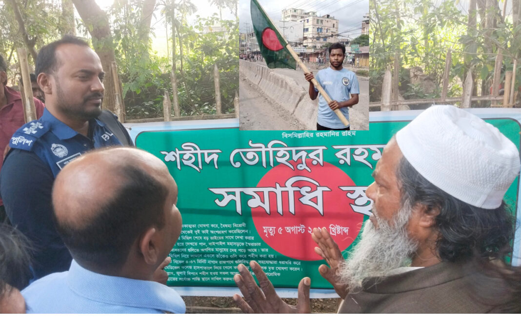 শহীদ তৌহিদুর রহমানের পিতা বলেন, যে মামলার জন্য আমার সন্তানের লাশ উত্তোলন করতে এসেছে এই মামলার বিষয়ে আমরা কিছুই জানি না,আমার বৌমা গোপনে এই মামলাটি করেছে আমাদের সাথে পরামর্শ ছাড়া। শহীদ তৌহিদুর রহমানের নামে বিভিন্ন জায়গা থেকে যে অর্থ এসেছে কোন টাকা আমাদেরকে দেয় নাই বৌমা আত্মসাৎ করছে, ময়নাতদন্তের জন্য মরদেহ উত্তোলন করতে প্রশাসন আসছিল। কিন্তু আমার সন্তানের লাশ কবর থেকে উত্তোলন করতে দেব না। কারণ কবর থেকে মরদেহ উত্তোলন ইসলাম বিরোধী। তাছাড়া আমার সন্তান একজন শহীদ। কবর থেকে মরদেহ উত্তোলন করলে শহীদের অমর্যাদা হতে পারে।