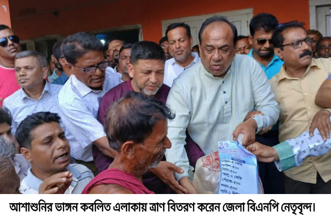 সবশেষে জেলা বিএনপির পক্ষ থেকে ক্ষতিগ্রস্ত ২৫০ পরিবারকে চাল, ডাল, তেল, আলু, চিনি, পেয়াজ, পানি এবং ৯০ পরিবারকে ২৭ হাজার টাকা প্রদান করা হয়।