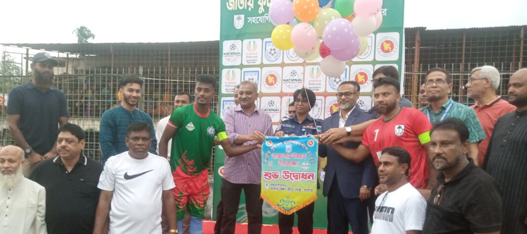 নিজস্ব প্রতিবেদক:যশোরে তারুণ্যের উৎসব-২০২৫ উপলক্ষে জাতীয় ফুটবল চ্যাম্পিয়নশিপের জেলা পর্যায়ের প্রথম ম্যাচে জয় পেয়েছে যশোর জেলা দল। রোববার বিকেলে শামস্-উল-হুদা স্টেডিয়ামে অনুষ্ঠিত ম্যাচে যশোর ১-০ গোলে নড়াইলকে পরাজিত করে। ম্যাচে একমাত্র গোলদাতা হৃদয় হোসেন বাবু ম্যান অব দ্য ম্যাচ নির্বাচিত হন।