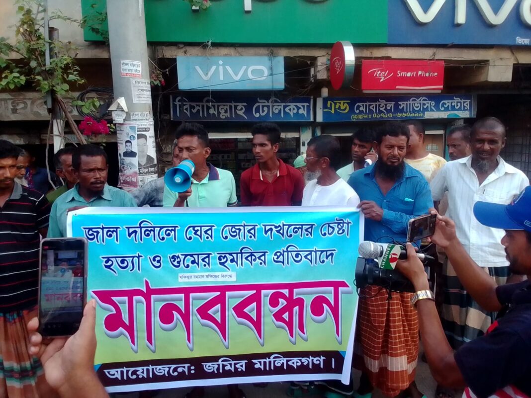 মনববন্ধনে আরো বক্তব্য রাখেন, জমির মালিক আবুল কালাম আজাদ, আব্দুর রশিদ, মতিউর রহমান।