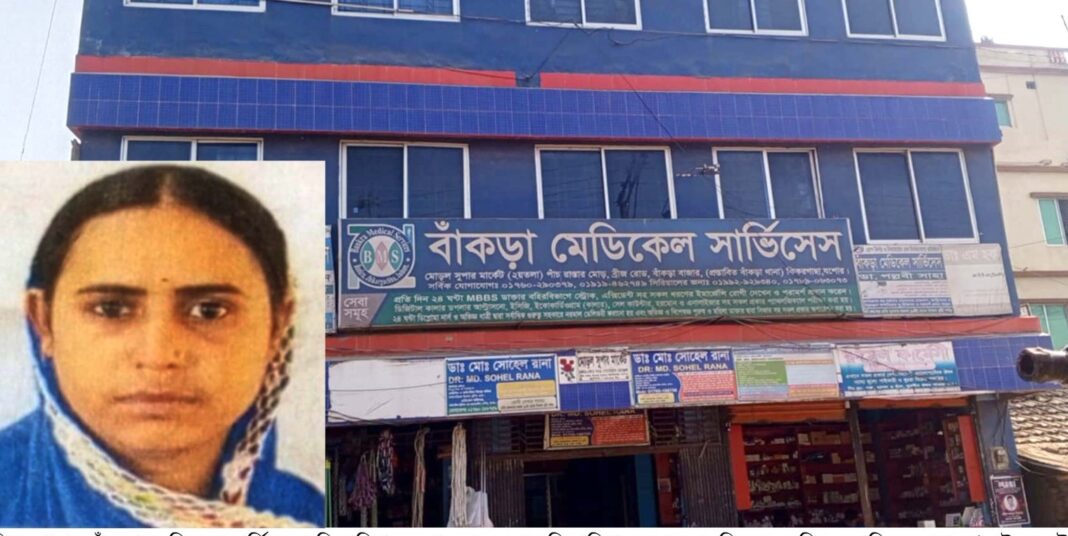 নিহতের স্বামী আব্দুল্লাহ আল মামুনের দাবি, বুধবার (১১ ফেব্রুয়ারি) বাঁকড়া মেডিকের সার্ভিসেসের চিকিৎসক ডা. পল্লবী সাহাকে দিয়ে তার স্ত্রীর সিজারিয়ান অপারেশনের জন্য ১৫ হাজার টাকায় চুক্তিবদ্ধ হন এবং নগদ ৩ হাজার ৫০০ টাকা জমা দেন।