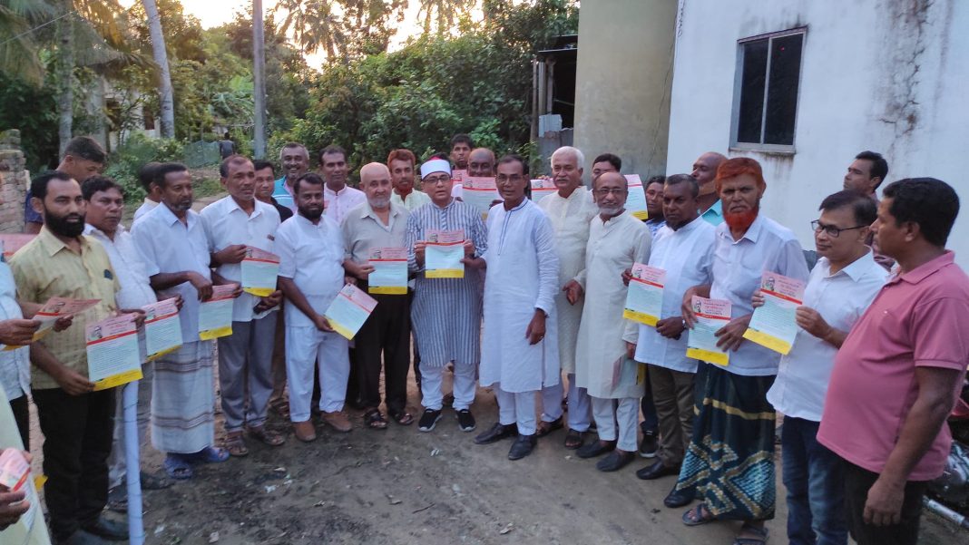 অনুষ্ঠান শেষ বাঁকড়া বাজারে সাধারণ মানুষের মাঝে শেখ হাসিনার উন্নয়নমূলক কাজের লিফলেট বিতরণ করেন।