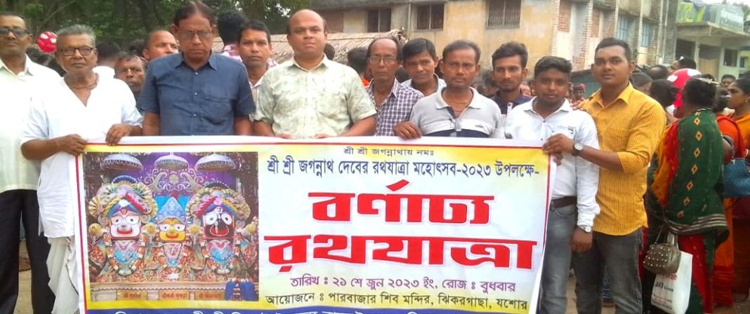 এম.আমিরুল ইসলাম জীবন:যশোরের ঝিকরগাছায় শ্রী শ্রী জগন্নাথ দেবের রথযাত্রা মহোৎসব-২০২৩ উপলক্ষে বর্ণাঢ্য রথযাত্রা অনুষ্ঠান অনুষ্ঠিত হয়েছে। পারবাজার শিব মন্দিরের আয়োজনে ও শ্রী শ্রী নিতাই চৈতন্য নামহট্ট সংঘের পরিচালনায় বুধবার সারাদিন ব্যাপী আলোচনা ও বিকালে রথযাত্রা বের হয়।