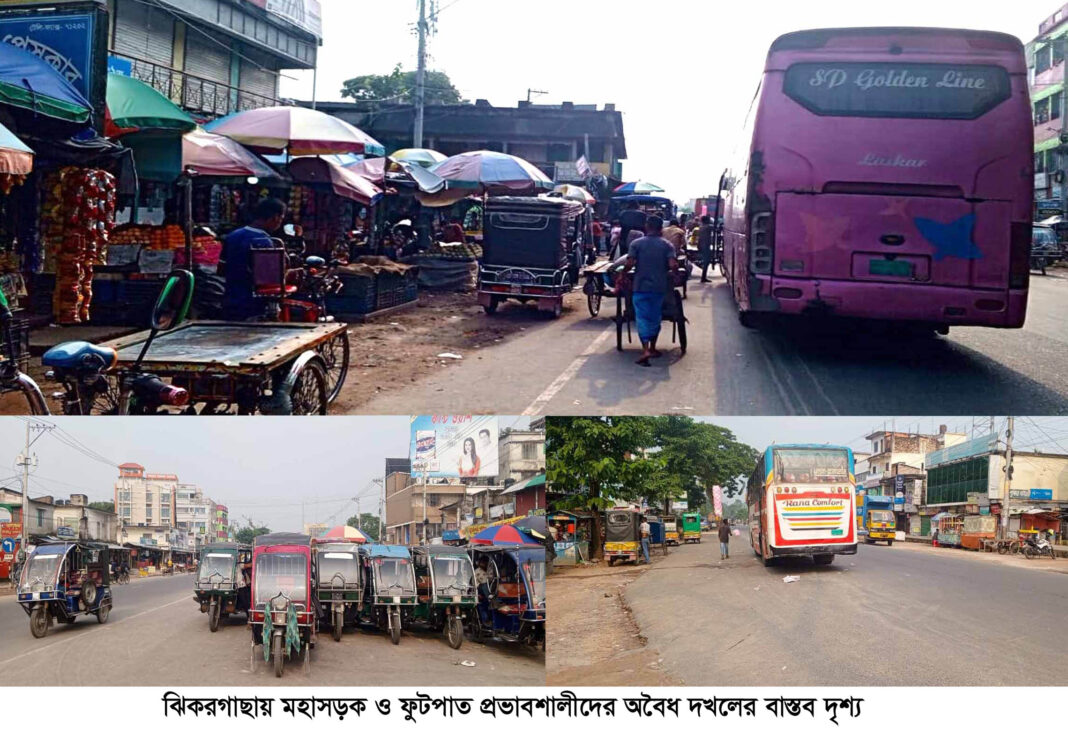 ঝিকরগাছা পৌর সদরের কৃর্তিপুর থেকে শুরু করে হাজেরালী বালিখোলা পর্যন্ত যশোর-বেনাপোল মহাসড়কে উপর ওয়ান্ডিং ওয়ার্কশপ, গাড়ী ধৌত করার স্থান, ফার্ণিচারের মালামাল, স’মিলের বড় বড় কাঠ, ঢেউ টিনের দোকানের টিন, হোটেল-রেস্তরা-ফাস্ট ফুড, বিভিন্ন ফলের স্থায়ী ও অস্থায়ী দোকান, চা-পানের দোকান, জুতা-কাপড়ের দোকান সহ প্রায় দুই শতাধিক অবৈধ দোকানপাট বসিয়ে ব্যবসায়ীরা সকাল থেকে মধ্য রাত পর্যন্ত ব্যবসা পরিচালনা করেছে।