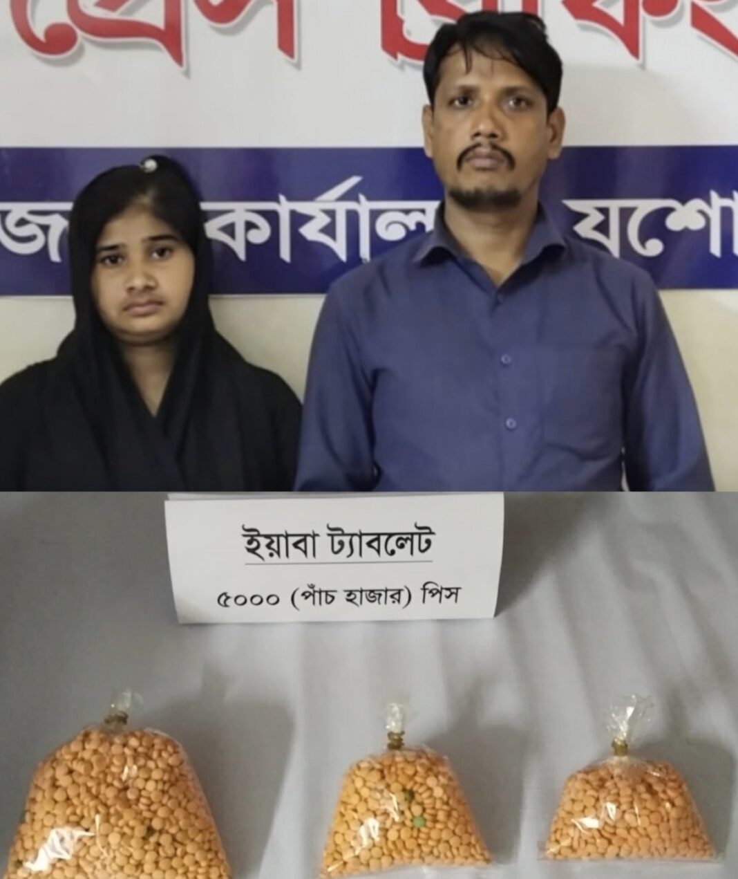 গ্রেফতারকৃতরা হলেন কক্সবাজারের মহেশখালী উপজেলার কুতুবজোম এলাকার মোহাম্মদ আলমগীর (৩০) ও তার স্ত্রী ময়না পাখি (২৪)। অভিযানে সাতক্ষীরা লাইন পরিবহনের একটি বাস (নং- ঢাকা মেট্রো-ব-১৫-০৭৬২) থেকে মোট ৫ হাজার ইয়াবা উদ্ধার করা হয়।