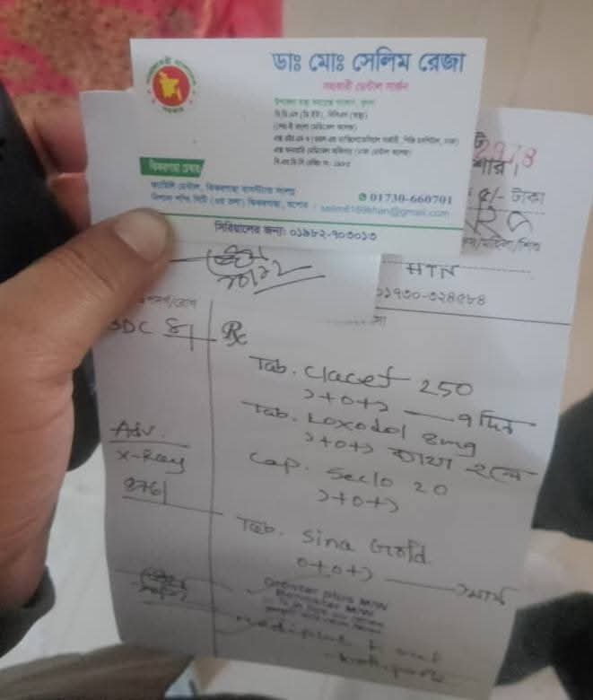 রোগীর স্বজনদের অভিযোগ, হাসপাতালের চিকিৎসক ইতোমধ্যে প্রেসক্রিপশন দিয়েছেন—তারা শুধুমাত্র এক্স-রে করাতে গিয়েছিলেন। কিন্তু জোরপূর্বক নতুন প্রেসক্রিপশন ধরিয়ে দিয়ে অতিরিক্ত ৫০০ টাকা দিতে বাধ্য করা হয়েছে।