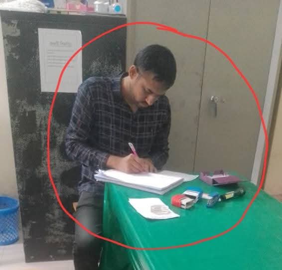 প্রত্যক্ষদর্শীদের ভাষ্য অনুযায়ী, রুবেল হাসপাতালের কোনো কর্মকর্তা-কর্মচারী না হওয়া সত্ত্বেও দাঁতের বিভাগের রেজিস্ট্রার খাতায় নাম লেখেন, রোগীর চেয়ারে বসে মোবাইলে কথা বলেন এবং হাসপাতালের প্রেসক্রিপশনের সঙ্গে নিশানা মার্কেটের চেম্বারের কার্ড ধরিয়ে দেন। ছবিতে (লাল গোল চিহ্নিত) বিষয়টি স্পষ্টভাবে দেখা গেছে বলে অভিযোগকারীরা জানান।