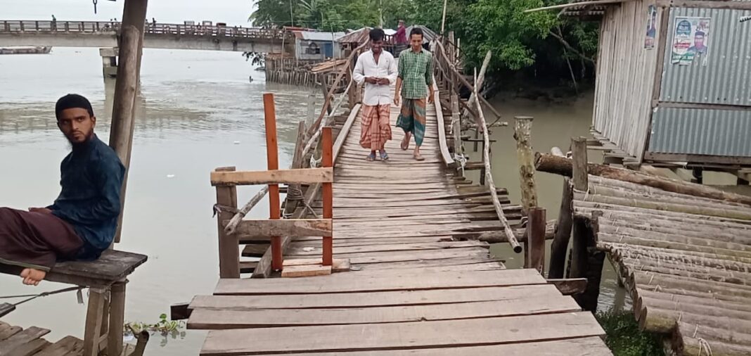 ঝুঁকিপূর্ণ কাঠের পুল দিয়েই চলছে হাজারো মানুষের চলাচল