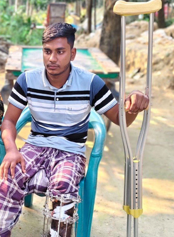 সরজমিন সাব্বির এর বাড়িতে গিয়ে দেখা যায়, সাব্বির ২ হাতে ক্রাচ আর পায়ে অপারেশনের খাচা নিয়ে উঠানে বসে আছে। সাব্বির এর পিতা ভ্যনচালক নুরুজ্জামান বলেন, ২০২১ সালের জুন মাসে রাস্তার পাশে দাড়িয়ে থাকা অবস্থায় একটি আলমসাধু নিয়ন্ত্রণ হারিয়ে সাব্বিরের পায়ের উপর উঠে গেলে বা পায়ের হাটুর নীচের হাড় চূর্ণবিচূর্ণ হয়ে যায়।