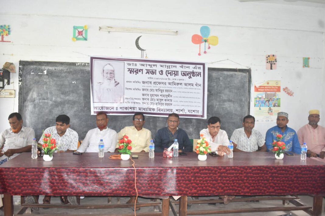 নিজস্ব প্রতিনিধি: যশোরের শার্শা উপজেলার পাকশিয়া মাধ্যমিক বিদ্যালয়ে বুধবার (২৩ জুলাই ) দুপুরে অনুষ্ঠিত হলো বিশিষ্ট সমাজ সংস্কারক ও পল্লী চিকিৎসক ডা. আব্দুল মান্নান খানের স্মরণসভা ও দোয়া অনুষ্ঠান। এ আয়োজন ছিল তাঁর প্রতি শ্রদ্ধাঞ্জলি এবং নতুন প্রজন্মের সামনে অবদান তুলে ধরার এক অনন্য উদ্যোগ।