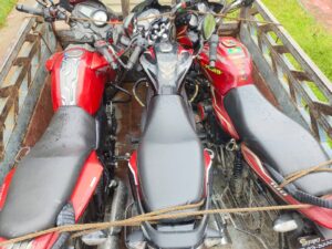 ৩। একটি লাল-কালো রংয়ের Discover 125 সিসি মোটরসাইকেল, ইঞ্জিন নং-JZYWJJ16194, চেসিস নং- MD2B44BY6JWJ94775, 125 wmwm, রেজিঃ নম্বর বিহীন,