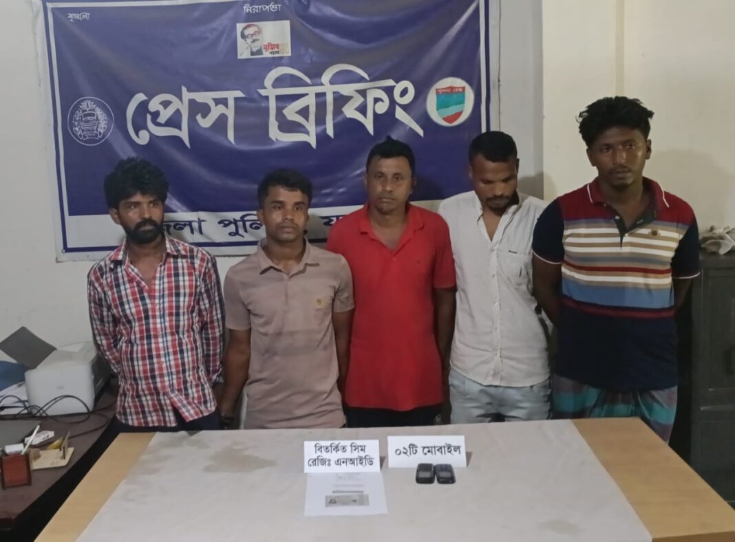 ,নিজস্ব প্রতিবেদক: যশোরে ডিবি পুলিশ পরিচয়ে মোবাইলে হুমকি’র ঘটনায় অপরাধ চক্রের ৫ সদস্যকে আটক করা হয়েছে। আটকৃতরা হচ্ছে মিঠুন কুমার ঘোষ, অসিম ঘোষ, জসিম উদ্দিন, মুহিন হোসেন ও বিশ্বজিৎ ঘোষ। তাদের সকলের বাড়ি সদর উপজেলার লেবুতলা এলাকায়।এসময় প্রতারণার কাজে ব্যবহৃত দু’টি মোবাইল ফোন উদ্ধার করা হয়েছে।