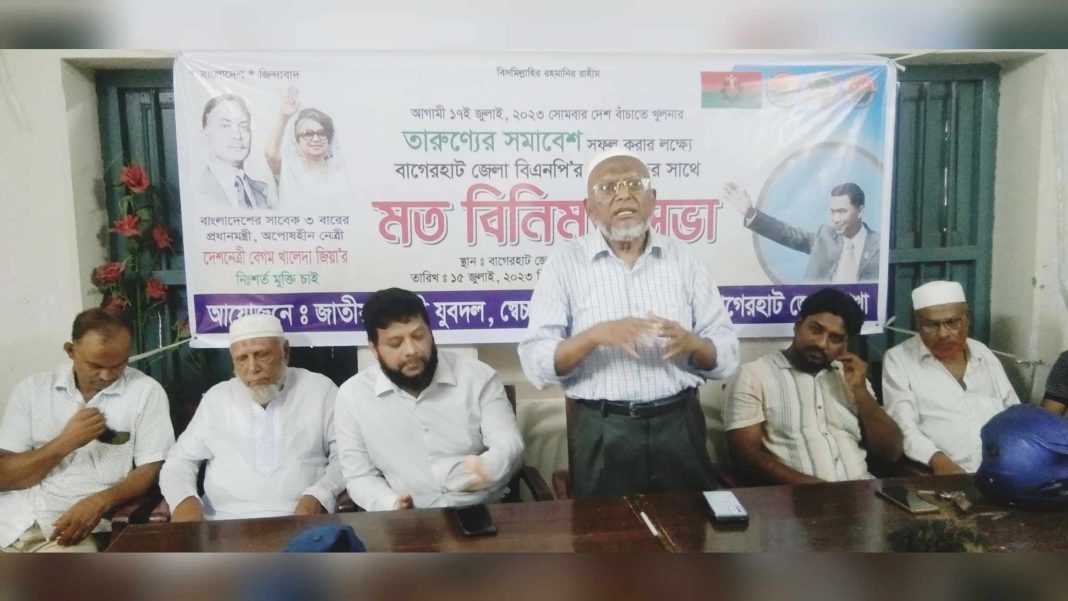 উপস্থিত ছিলেন বাগেরহাট জেলা বিএনপির আহবায়ক ইঞ্জিনিয়ার এটিএম আকরাম হোসেন তালিম। অনুষ্ঠানটি সঞ্চালনার দায়িত্বে ছিলেন বাগেরহাট জেলা ছাত্রদলের সাংগঠনিক সম্পাদক মোল্লা আতিকুর রহমান রাসেল। মত বিনিময় সভায় প্রধান অতিথির বক্তৃতায় জেলা বিএনপির আহবায়ক ইঞ্জিনিয়ার এটিএম আকরাম হোসেন তালিম বলেন, আমাদের দফা এক দাবীও একটা। আর তা হলো তত্ত্বাবধায়ক