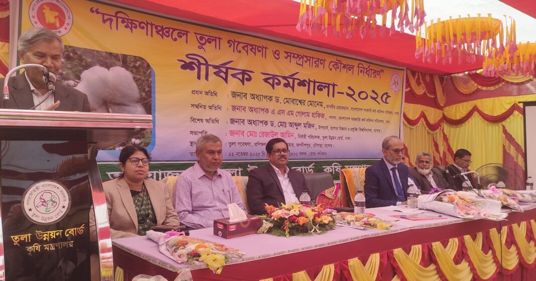 যশোরের চৌগাছায় জগদীশপুর তুলা গবেষণা, প্রশিক্ষণ ও বীজবর্ধন খামার, জগদীশপুর, চৌগাছা, যশোরে একদিনের দক্ষিণঅঞ্চলে তুলা গবেষণা ও সম্প্রসারণ কৌশল নির্ধারণ শীর্ষক কর্মশালা অনুষ্ঠিত হয়।